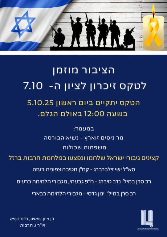 הציבור מוזמן לטקס זיכרון לציון ה- 7.10